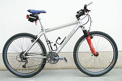 A bicycle, also known as a bike, pushbike or cycle, is a human-powered, pedal-driven, single-track vehicle, having two wheels attached to a frame, one behind the other. A person who rides a bicycle is called a cyclist or a bicyclist.